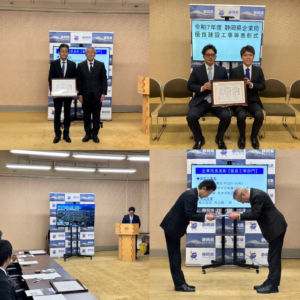 工事、会社、そして技術者へ向けた表彰を数多くいただき大変光栄です。