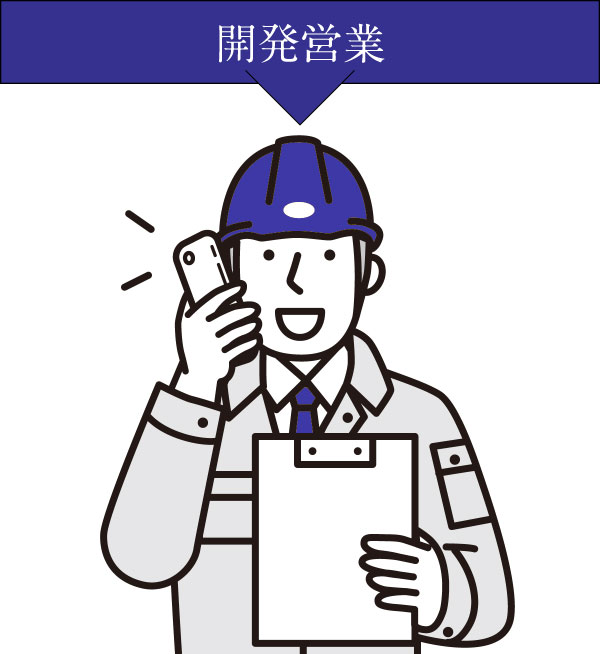 お客様と企業をつなぐ窓口。民間営業は法人・個人への建築や土地活用の提案、官庁営業は公共工事の受注に向けた情報収集や入札を担います。